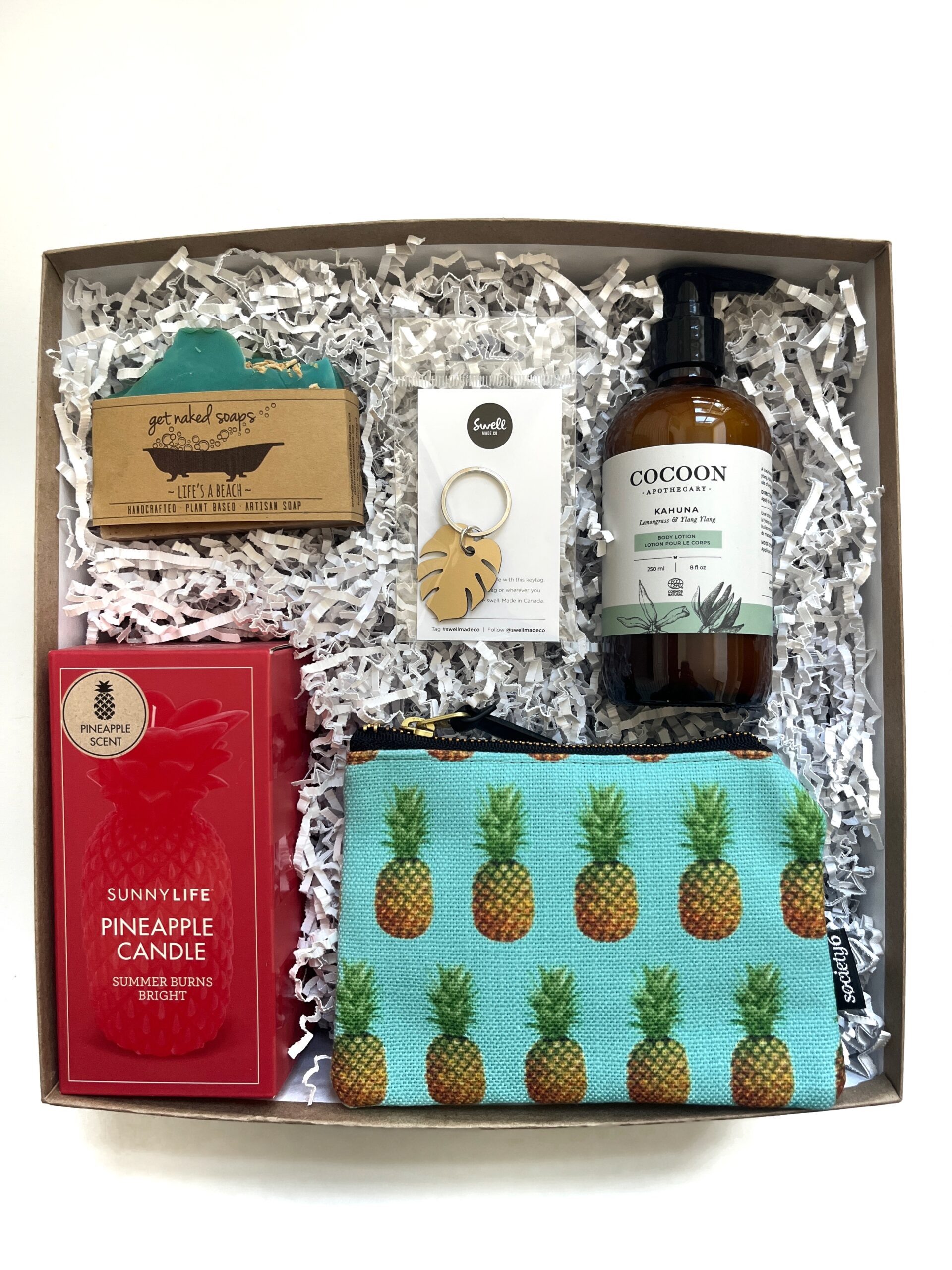 When you can’t make it to the beach, this tropics inspired, with all things pineapples Giftie box is the next best thing.